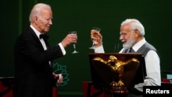 "ორი დიდებული ერი, ორი დიდი მეგობარი, ორი დიდი ძალა. გაუმარჯოს!" - თქვა ბაიდენმა სახელმწიფო ვახშამზე, რომელიც მხოლოდ განსაკუთრებით საპატიო სტუმრებისთვის იმართება. მოდიმ კი პასუხად პრეზიდენტს უთხრა, რომ ის "რბილი მოსაუბრეა", მაგრამ როცა მოქმედებაა საჭირო, "თქვენ ძალიან ძლიერი ხართ".