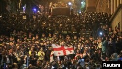 რუსთაველის გამზირზე კი აქციას მსვლელობით შეუერთდნენ ხელოვნების სფეროს წარმომადგენლები.