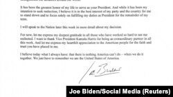ჯო ბაიდენი 5 ნოემბრის საპრეზიდენტო არჩევნებში მონაწილეობას აღარ მიიღებს. კვირას, 21 ივლისს მან წერილი გაავრცელა, სადაც ამერიკელებს მიმართავს და ამის შესახებ ატყობინებს. პრეზიდენტი ამბობს, რომ მოგვიანებით ის თავისი გადაწყვეტილების შესახებ მოსახლეობას სიტყვით მიმართავს.