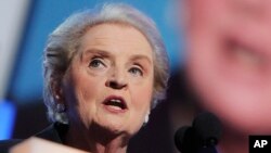 შეერთებული შტატების პირველი ქალი სახელმწიფო მდივანი, რომელიც ამერიკის დიპლომატიას სათავეში 1997-2001 წლებში ედგა და ამჟამად ეროვნულ დემოკრატიულ ინსტიტუტს თავმჯდომარეობს პოლიტიკაში ქალების წინააღმდეგ მიმართულ ძალადობაზე საუბრობს.