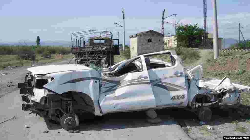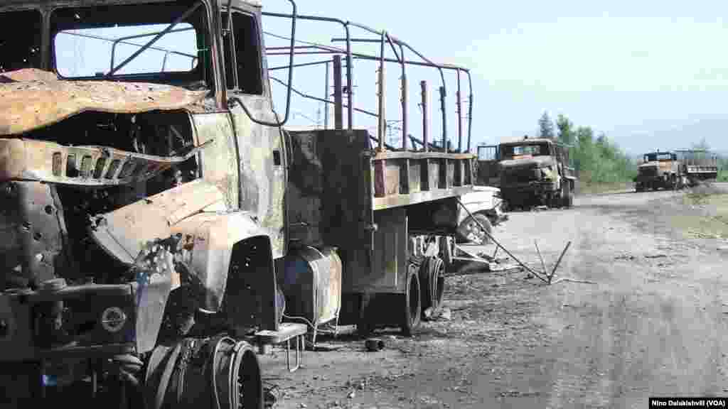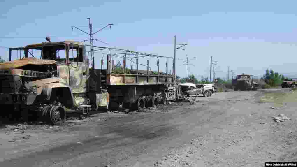 2008 წლის 11 აგვისტოს ცხინვალიდან მომავალი ქართული სამხედრო კოლონა რუსულმა ავიაციამ დაბომბა. შინდისთან გამართულ ბრძოლას 17 ქართველი მებრძოლის სიცოცხლე შეეწირა. ფოტოები ნინო დალაქიშვილმა აგვისტოს მიწურულს, ჯერ კიდევ იმ დროს გადაიღო, როდესაც ამ ადგილებს რუსული სამხედრო ძალა აკონტროლებდა.