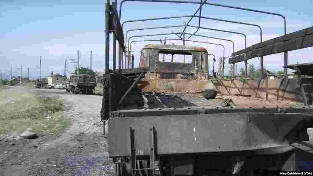 2008 წლის 11 აგვისტოს ცხინვალიდან მომავალი ქართული სამხედრო კოლონა რუსულმა ავიაციამ დაბომბა. შინდისთან გამართულ ბრძოლას 17 ქართველი მებრძოლის სიცოცხლე შეეწირა. ფოტოები ნინო დალაქიშვილმა აგვისტოს მიწურულს, ჯერ კიდევ იმ დროს გადაიღო, როდესაც ამ ადგილებს რუსული სამხედრო ძალა აკონტროლებდა.