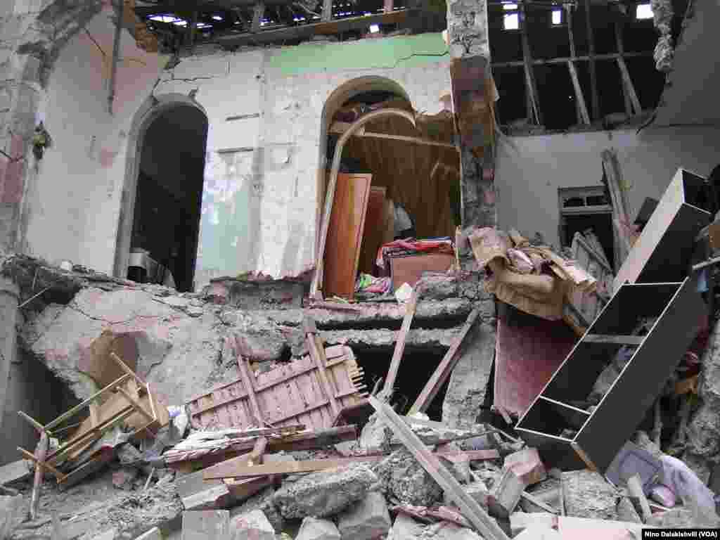 2008 წლის 9 აგვისტოს გორში, კომბინატის დასახლებაში, რუსულმა ჭურვებმა რამდენიმე საცხოვრებელი სახლი დაანგრია, ჩამოშალა მე-7 საჯარო სკოლის კედელი. დაიღუპნენ მშვიდობიანი მოქალაქეები, მათ შორის, მცირეწლოვანი ბავშვიც. ფოტოები ნინო დალაქიშვილმა დაბომბვიდან 15 წუთის შემდეგ გადაიღო. გაფრთხილება: ფოტოგალერეა შეიცავს გრაფიკულ გამოსახულებებს, რომელიც აუდიტორიის ნაწილისთვის შეიძლება მიუღებელი იყოს.