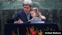 ჯონ კერის ორი წლის შვილიშვილი კალთაში ეჯდა, როცა გაეროში, 2016 წელს, ამერიკის სახელით, პარიზის კლიმატურ შეთანხმებას მოაწერა ხელი. ეს ფოტო ჯონ კერიმ ორშაბათს "ტვიტერის" საკუთარ გვერდზე გამოაქვეყნა, მას შემდეგ, რაც ის ჯო ბაიდენმა, შეერთებული შტატების არჩეულმა პრეზიდენტმა, კლიმატური ცვლილებების მიმართულებით, საგანგებო ელჩად დაასახელა.