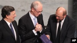 ორშაბათს ოსლოში ნორვეგიის ნობელის კომიტეტის თავმჯდომარემ თობჯორნ ჯაგლანდმა საპატიო პრემია ევროკავშირის პრეზიდენტს ჰერმან ვან რომპოის, ევროკომისიის პრეზიდენტს ჟოზე მანუელ ბაროსოს და ევროკავშირის პარლამენტის პრეზიდენტ მარტინ შულცს გადასცა.