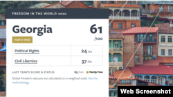 საქართველოს ქულა “ფრიდომ ჰაუზის” ყოველწლიურ შეფასებაში წელს 2 ქულით გაუარესდა. თუკი საქართველოს 2018 წელს მსოფლიო თავისუფლების რეიტინგში, რომელიც ქვეყანაში პოლიტიკურ და სამოქალაქო უფლებებისა და თავისუფლებების კუთხით არსებულ ვითარებს აფასებს, 100-დან 64 ქულა ჰქონდა, 2019 წლის მონაცემებით, ეს ქულა 63 იყო. 2020 წელს კი - 61. საქართველო კვლავ ნახევრად დემოკრატიული ქვეყნების ნუსხაშია.