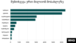 იმ 7 ევროპულ ქვეყანას შორის, სადაც წითელას შემთხვევები წელს ყველაზე მეტად გაიზარდა, საქართველო მესამე ადგილზეა. ყველაზე მეტი შემთხვევა ერთ მილიონ მოსახლეზე, სერბეთში დაფიქსირდა, შემდეგ უკრაინა მოდის. საქართველოში, ჯანდაცვის მსოფლიო ორგანიზაციის მონაცემებით, 2018 წლის პირველ 6 თვეში დაავადების 1000-ზე მეტი შემთხვევა აღირიცხა.