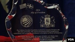 თავისუფლების მოკავშირე 2016 ჯილდო საქართველოს ელჩს არჩილ გეგეშიძეს კონგრესმენმა ჯო უილსონმა გადასცა. სამახსოვრო დაფაზე წერია: გადაეცემა ქართველ ხალხს და საქართველოს ლიდერებს სამაგალითო და მამაცური ბრძოლისთივს თავისუფლებისა და დემოკრატიის დაცვაში. დაფის ასლი სქართველოს ჯარის დაფასების მიზნით კონგრესმენმა სამხერდო ატაშეს ვიფხვია ჩალაბაშვილსაც გადასცა.
