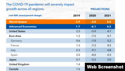 საერთაშორისო სავალუტო ფონდის შეფასებით, 2020 წელს გლობალური ეკონომიკა შესაძლოა 3 პროცენტით შემცირდეს. ეს იმაზე 30-ჯერ უარესი იქნება, რაც მსოფლიომ განიცადა 2009 წელს, როდესაც გლობალურმა ფინანსურმა კრიზისმა ეკონომიკის 0.1 პროცენტით შემცირება გამოიწვია.