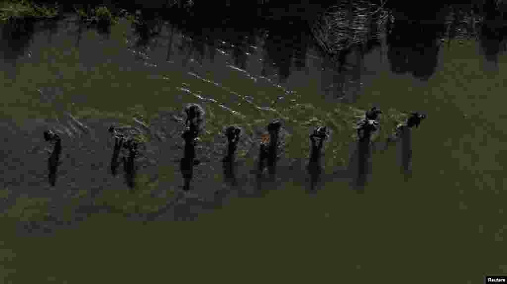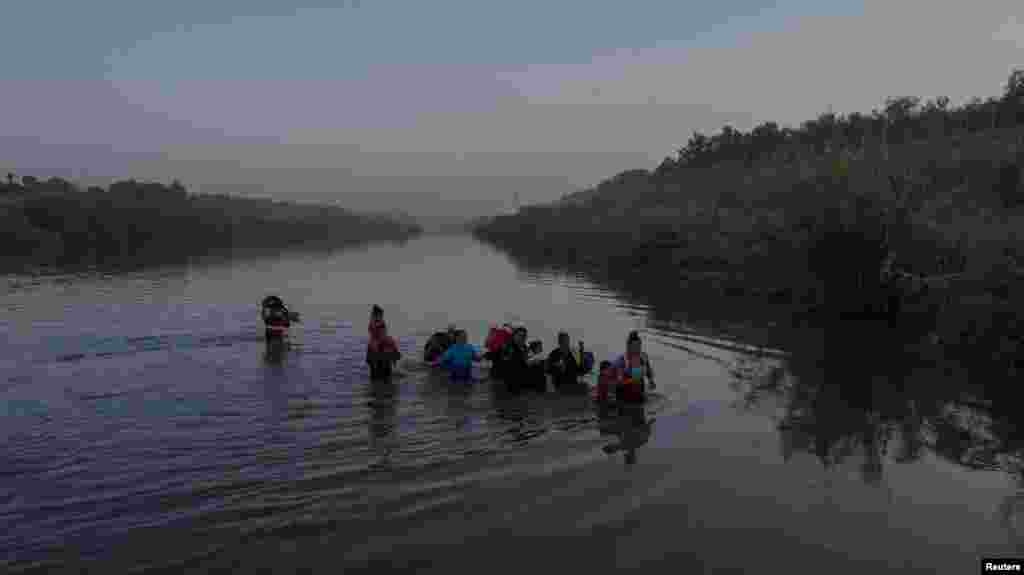 მიგრანტები მექსიკის საზღვართან მდებარე მდინარე რიო-გრანდეს ძირითადად ღამით კვეთენ. უმეტესად სამხრეთ ამერიკის ქვეყნებიდან მომავალი ადამიანები ამერიკის შეერთებულ შტატებში გადასვლას და თავშესაფრის მიღებას ცდილობენ. ეს ფოტოები ტეხასის შტატში მდებარე სასაზღვრო დასახლება იგლ-პასთანაა გადაღებული.