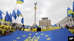 პოლიტიკოსების ნაწილი და საზოგადოების აზრი უკრაინის ევროკავშირში შესვლასთან დაკავშირებით ერთიანია. გამოკითხული მოსახლეობის 45% ევროკავშირში გაწევრიანების მომხრეა. მოსკოვში დაფუძნებულ ევრაზიულ კავშირში შესვლის მომხრეთა რაოდენობა ევროკავშირში შესვლის მომხრეთა რაოდენობას სამჯერ ჩამოუვარდება.