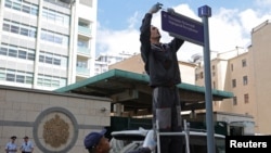 მანამდე, მოსკოვის ხელისუფლებამ, იმ ქუჩას, სადაც შეერთებული შტატების საელჩოა განთავსებუული, „დონეცკის სახალხო რესპუბლიკის მოედანი“ დაარქვა. ამერიკის საელჩოს, საკუთარ ვებ გვერდზე, მისამართად ქუჩის სახელის ნაცვლად, გეოგრაფიული კოორდინატები აქვს მითითებული.