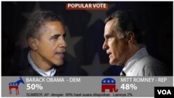 ფლორიდის საარჩევნო კომისიის განცხადებით, ობამამ ხმების 50% მიიღო, მაშინ როდესაც რომნიმ 49.1. სხვაობა სულ 74 ათას ამომრჩეველს შეადგენდა. ეს კი საკმარისი აღმოჩნდა იმისთვის, რომ ხელახალ გადათვლას ადგილი არ ჰქონოდა.