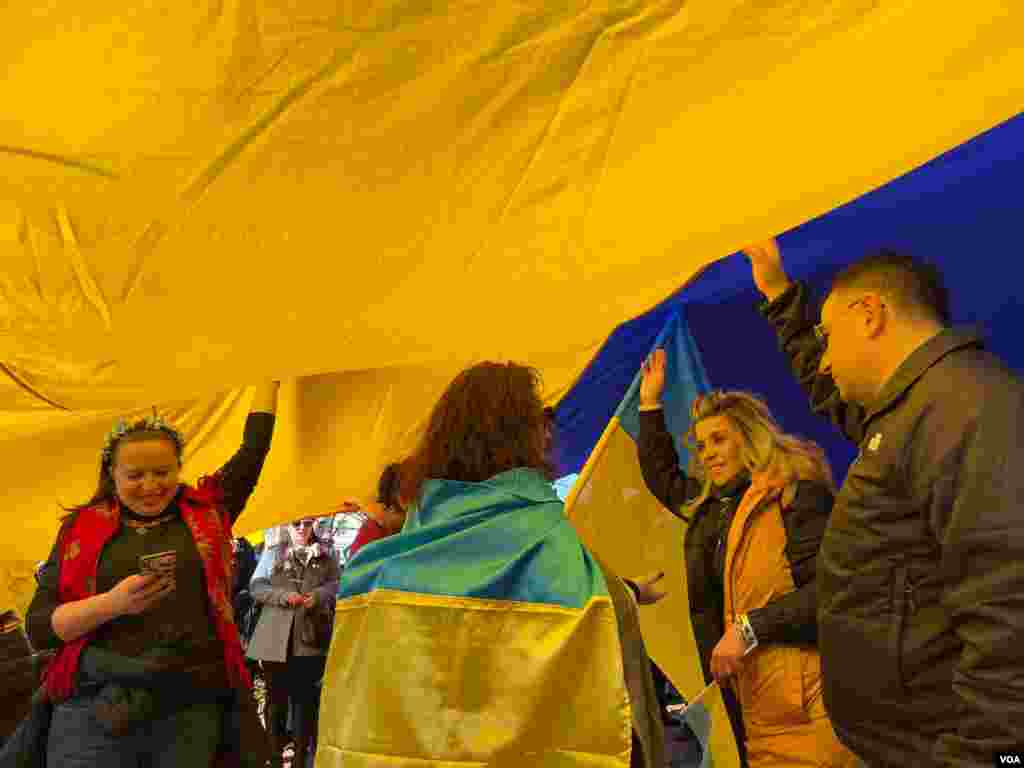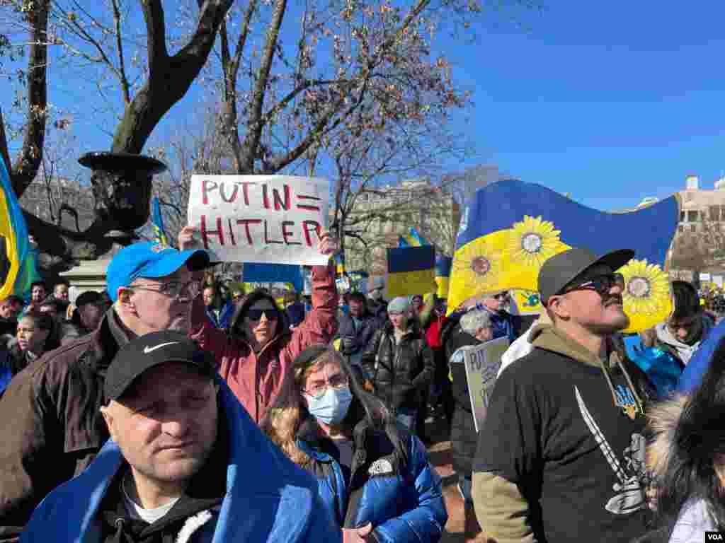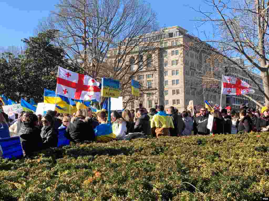 თეთრ სახლთან გამართულ უკრაინის მხარდამჭერ აქციაზე, ამერიკის სხვადასხვა ქალაქიდან ჩასული მოქალაქეები გამოვიდნენ. ვაშინგტონის სოლიდარობის აქციაზე მყოფთა შორის ქართველებიც იყვნენ.