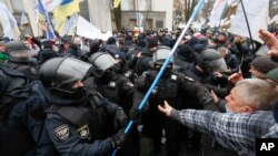 რამდენიმე ასეულმა ყოფილმა უკრაინელმა პოლიციელმა კიევში პარლამენტის შენობაში შეჭრა სცადა. პენსიაში გასული ყოფილი სამართალდამცავები მთავრობას მათი პენსიების გაზრდას სთხოვენ.