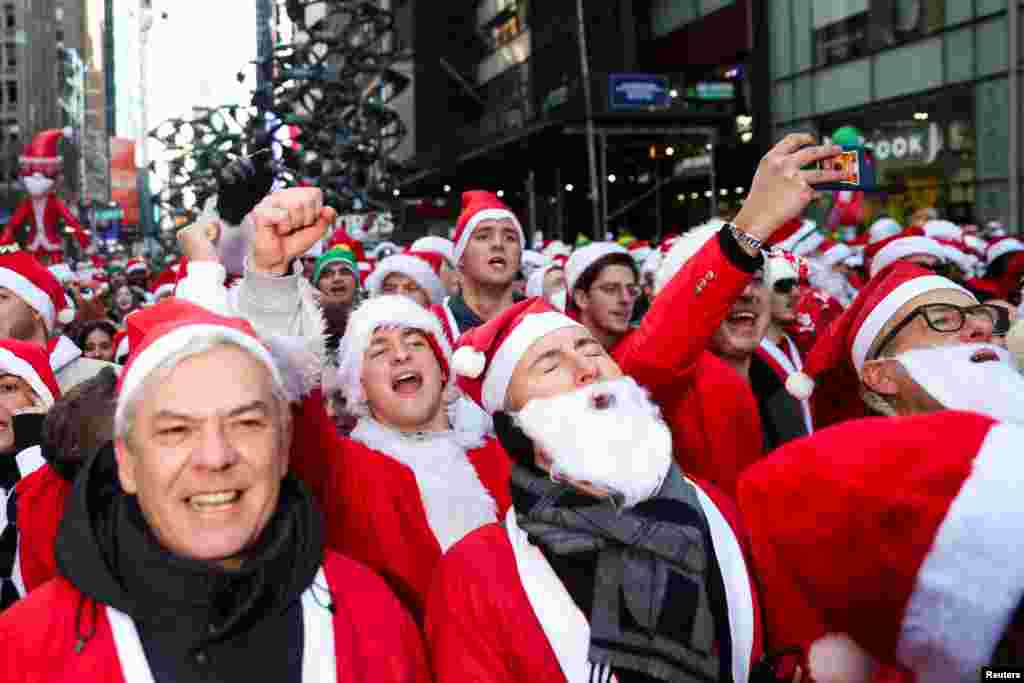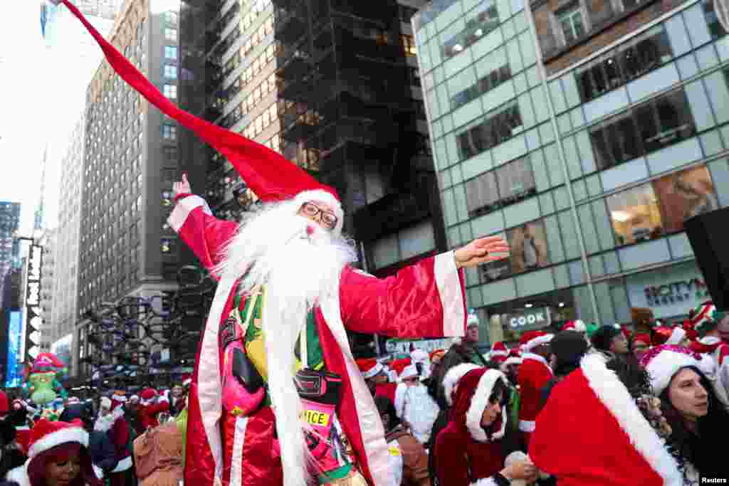 ათასობით სანტა კლაუსის კოსტიუმში გამოწყობილი მხიარული ადამიანით აივსო 14 დეკემბერს ნიუ-იორკის ქუჩები, ტროტუარები, კაფეები და ბარ-რესტორნები. "სანტაკონის" ყოველწლიური აღლუმი არაკომერციული, აპოლიტიკური მსვლელობაა, რომლის მოგება მთლიანად ქველმოქმედებას ხმარდება, ამბობენ მარშის ორგანიზატორები.