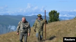 პუტინს თან ახლდა თავდაცვის მინისტრი, 64 წლის ციმბირელი სერგეი შოიგუ და რა თქმა უნდა, მედიის წარმომადგენლებიც იქვე იყვნენ. პუტინი ფოტოებზე აღბეჭდეს სოკოს კრეფისას და იმ დროს, როცა შემაღლებული ადგილიდან მდინარე ენისეის გაჰყურებდა და თან მეგზურთან საუბრობდა.
