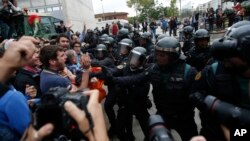 საარჩევნო უბანზე, სადაც კატალონიის პრეზიდენტი კარლოს პუჩემონტი ხმის მიცემას გეგმავდა, პოლიციას და მომიტინგეებს შორის შეტაკება მოხდა. არიან დაშავებულებიც. დაპირისპირება რამდენიმე სხვა უბანზეც დაფიქსირდა.