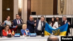 ცოტა ხნით ადრე, რამდენიმე უკრაინელი დელეგატი დაცვას დაუპირისპირდა, რომელიც მათ გაყვანას ცდილობდა. ეს მას შემდეგ მოხდა, რაც უკრაინელმა დელეგატებმა შეძახილებით და უკრაინის დროშებით, პროტესტის გამოხატვა სცადეს, როცა რუსეთის დელეგაციის ხელმძღვანელი ასამბლეაზე სიტყვით გამოდიოდა.