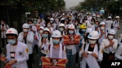 სანქციები იმ დროს გამოცხადდა, როდესაც მანდალეის მთავარ ქუჩაზე ასობით დემონსტრანტი, უმეტესწილად ექიმები, ექთნები , სტუდენტები და სხვა სამედიცინო პერსონალი გამოვიდა. მათ თეთრი ხალათები ეცვათ და ერთ დღით ადრე ჩატარებული მსგავსი დემონსტრაცია გაიმეორეს.