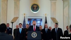 "გასულ კვირას ჩვენ გადამწყვეტი ნაბიჯი გადავდგით დაუნდობელი ტერორისტის შესაჩერებლად, რათა ის ვეღარ დაემუქროს ამერიკელების სიცოცხლეს. ჩემს განკარგულებაზე დაყრდნობით, შეერთებულმა შტატებმა გაანადგურა მსოფლიოს ერთ-ერთი მთავარი ტერორისტი - ყასემ სოლეიმანი...