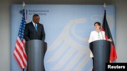 “მოკავშირეებთან და პარტნიორებთან კონსულტაციების შემდეგ შემიძლია ვთქვა, რომ ამერიკის შეერთებული შტატები გერმანიაში დამატებით 500 სამხედროს განათავსებს. ამერიკელი სამხედდროები მუდმივად განთავსდებიან ვისბადენის რაიონში არსებულ ბაზაზე,“ - ამბობს ამერიკის თავდაცვის მდივანი, რომელიც მანამდე გერმანელ კოლეგას შეხვდა.